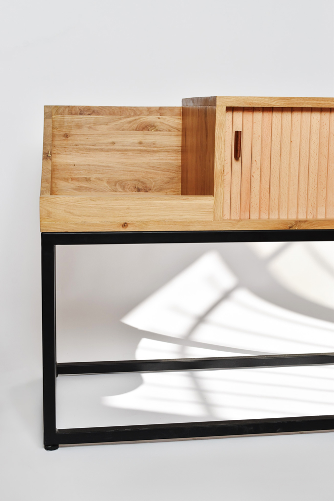שולחן סלון מעוצב בקווים נקיים ואלגנטיים, עשוי מעץ איכותי בגימור טבעי שמשתלב באופן מושלם בכל חלל.